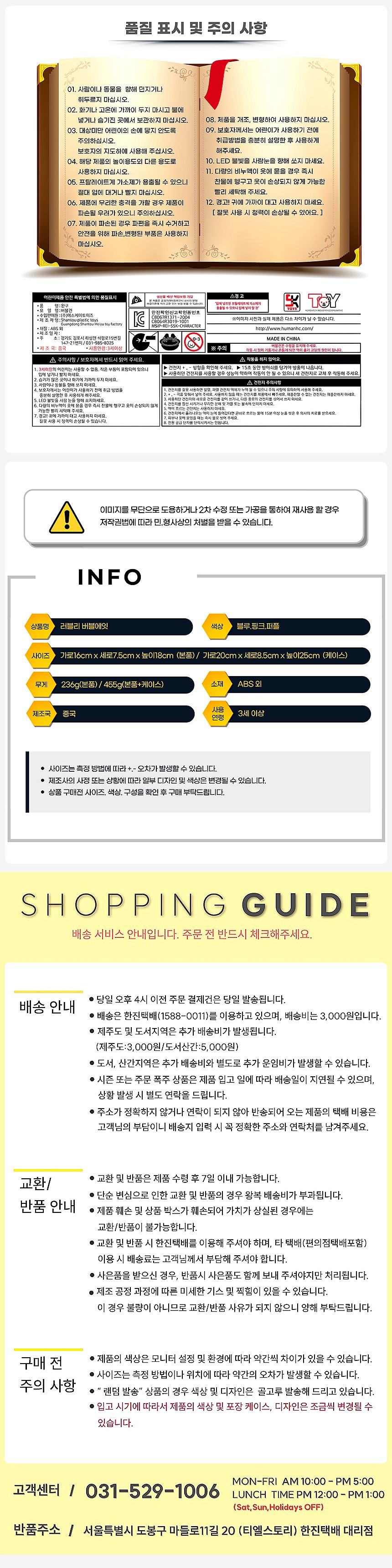 • - 교환/반품 안내: 고객변심 및 주문착오에 의한 교환/반품은 제품 수령일로부터 7일 이내 가능합니다.