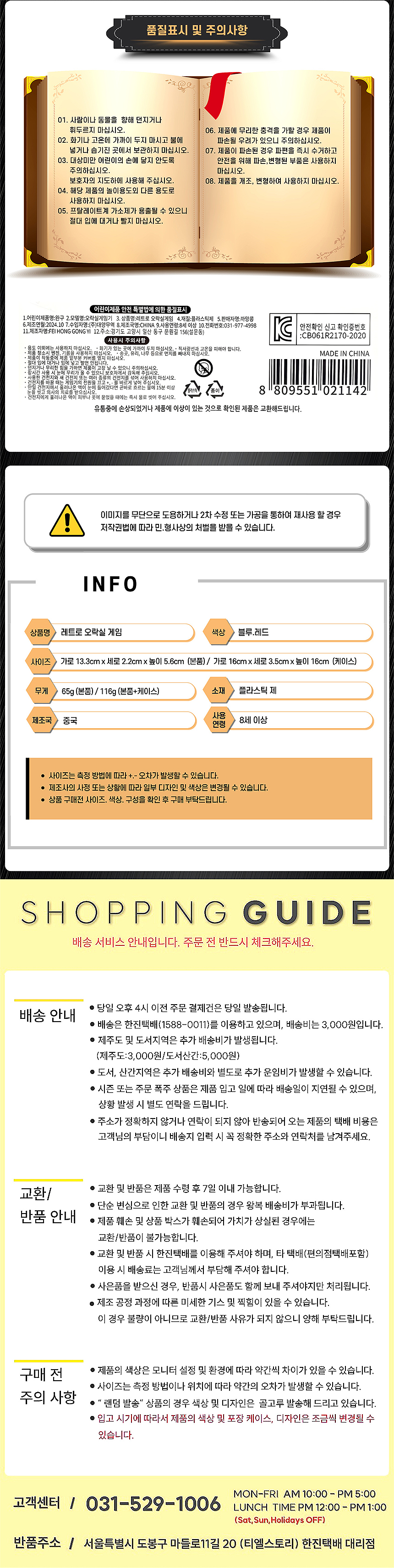 • - 교환/반품 안내: 고객변심 및 주문착오에 의한 교환/반품은 제품 수령일로부터 7일 이내 가능합니다.