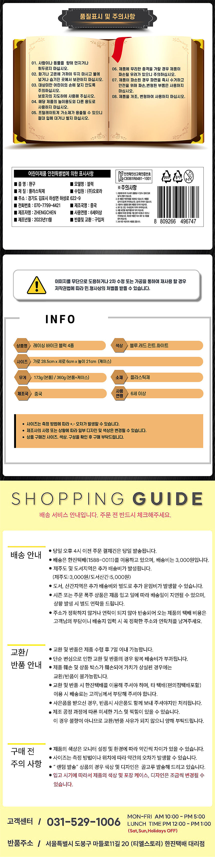 • - 교환/반품 안내: 고객변심 및 주문착오에 의한 교환/반품은 제품 수령일로부터 7일 이내 가능합니다.