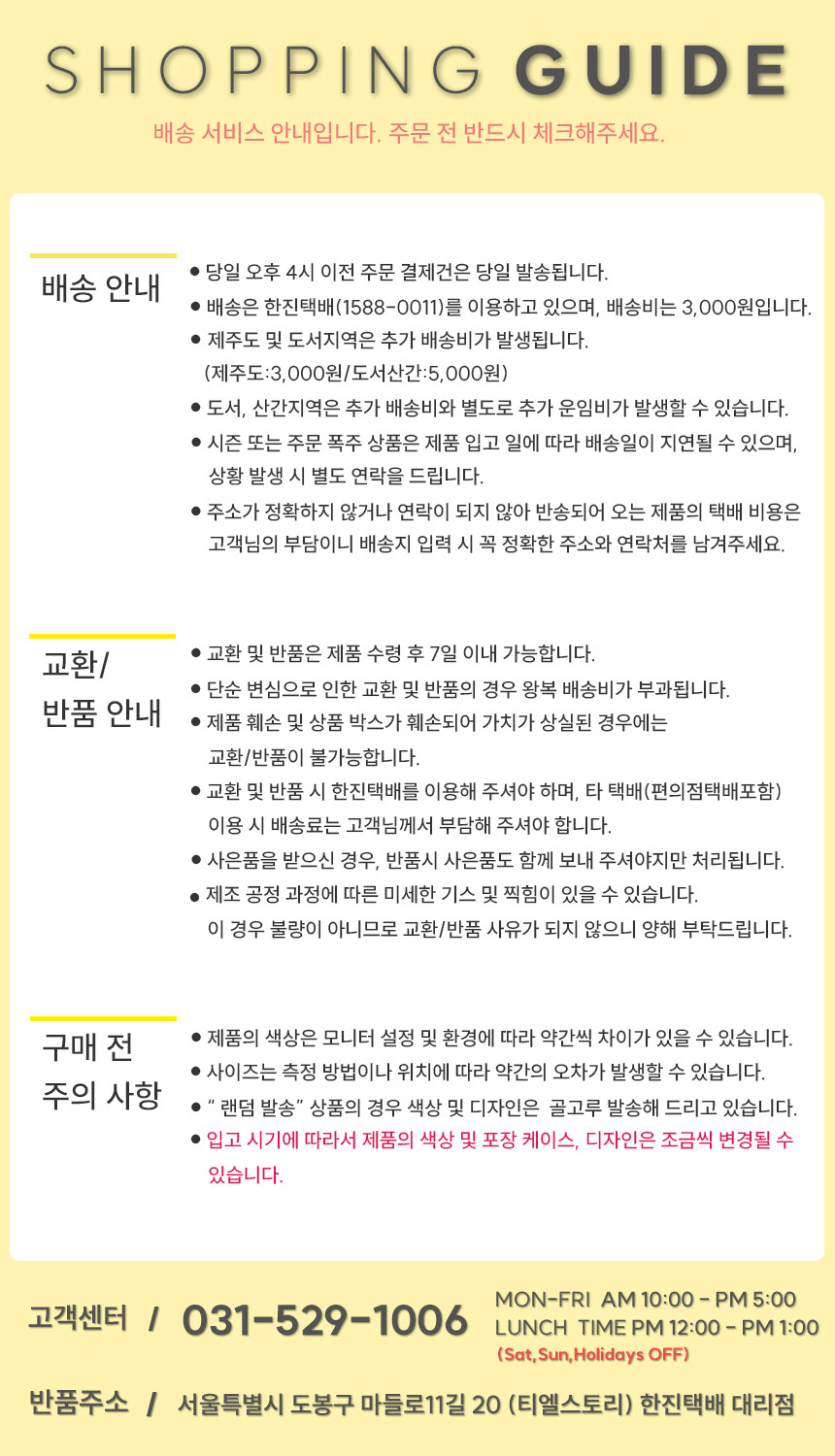 배송비 : 3,000원 / 제주 추가 3,000원.제주 외 도서지역 추가 5,000원