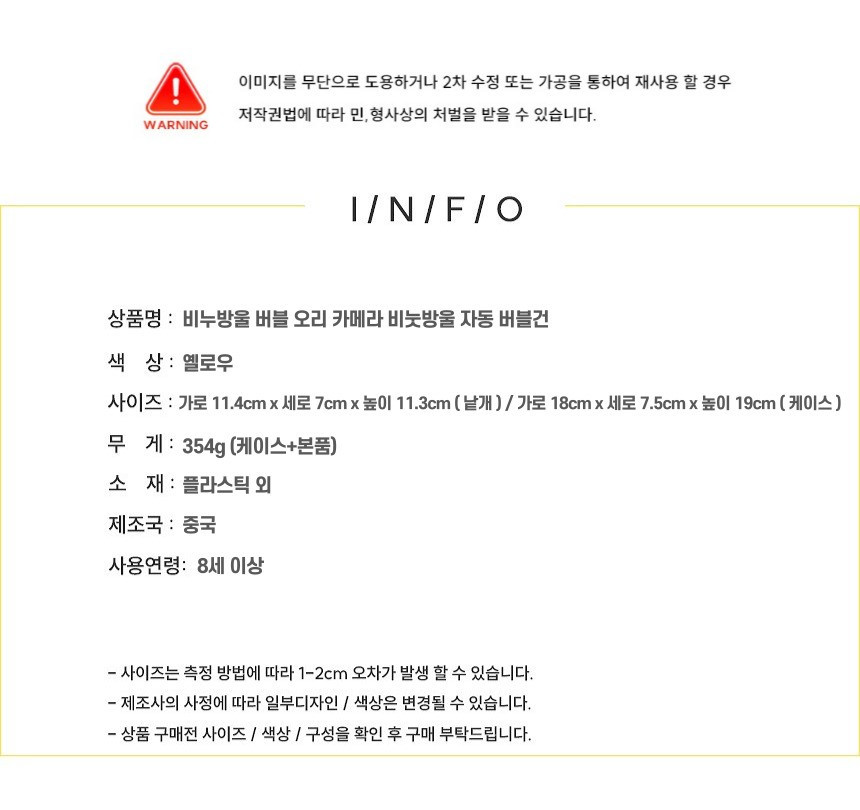 품명 및 모델명 완구 / 비누방울 버블 오리 카메라 비눗방울 자동 버블건