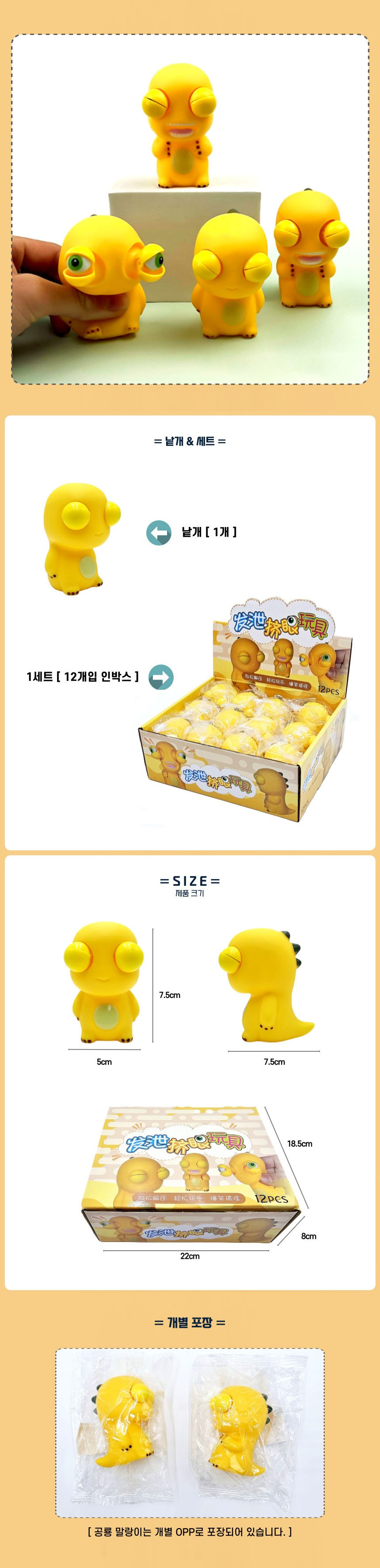 눈튀어나오는 공룡 말랑이 피젯볼 눈뜨는 주물럭 스트레스해소 장난감 (12개1세트)