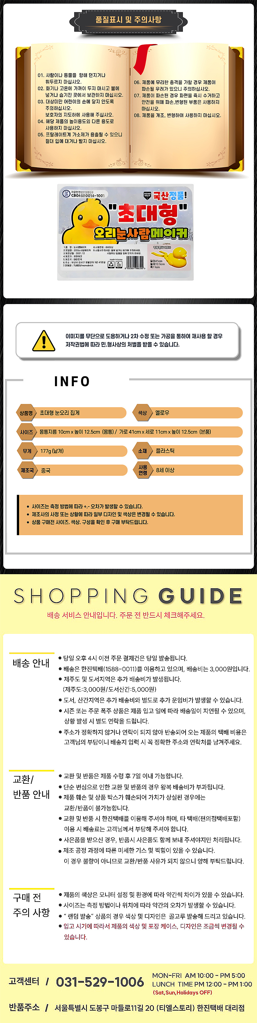 • - 교환/반품 안내: 고객변심 및 주문착오에 의한 교환/반품은 제품 수령일로부터 7일 이내 가능합니다.