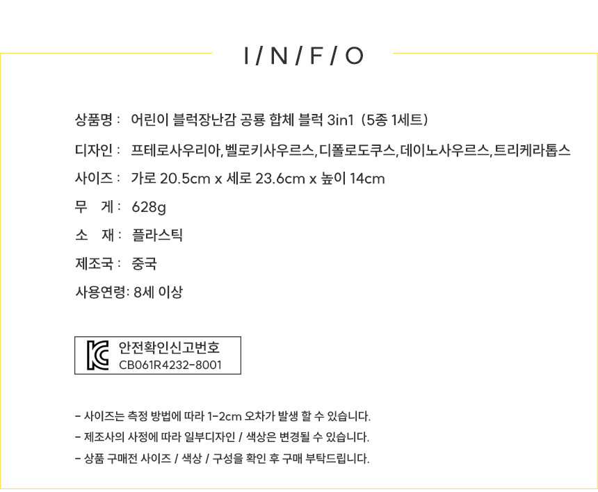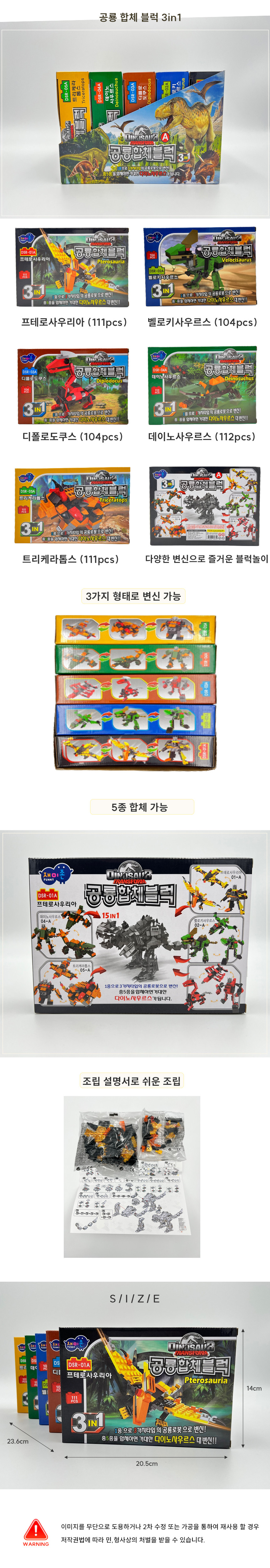 공룡 합체블럭 3in1 5종 공룡 피규어 블럭 만들기 (5종 1세트)